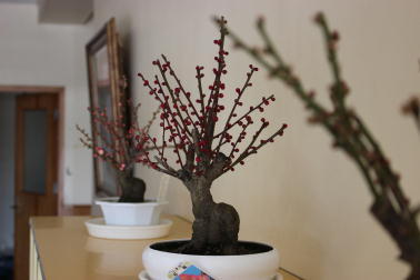 職員玄関の梅のつぼみも、大きく膨らんできました。