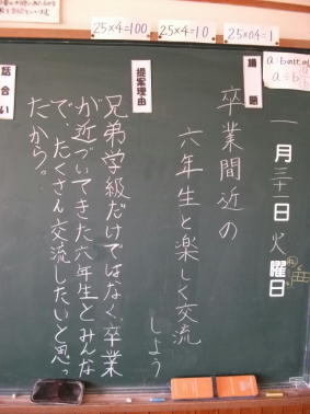 議題は「卒業間近の6年生と楽しく交流しよう」でした。