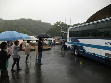 バスの車中では、子どもたちが天気の回復を願っていることでしょう。