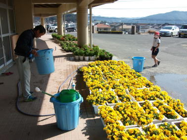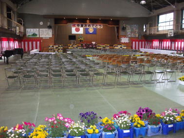 4年生、5年生が寸暇を惜しんで式場並びにその周りをきれいにしておりました。