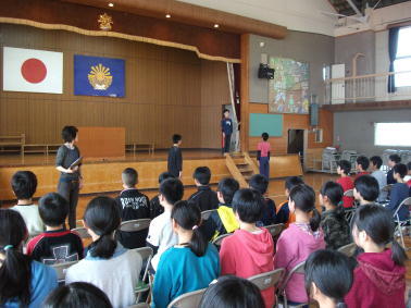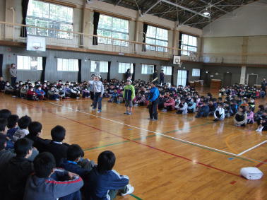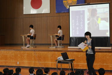 篠原先生、甲斐先生が中心になって命を守る学習を行いました。