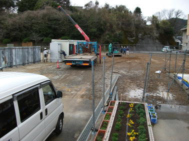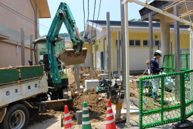 今週に入って、いよいよ給食室の新築工事が始まりました。