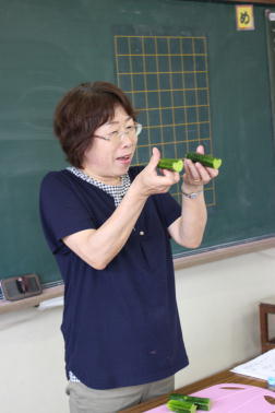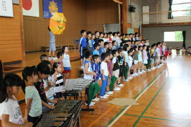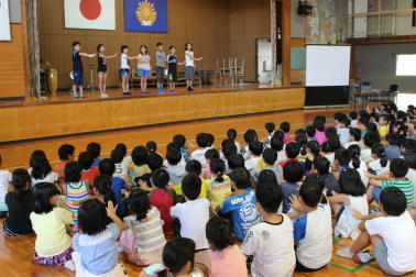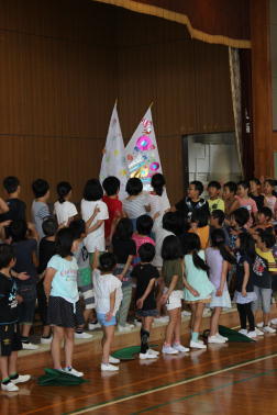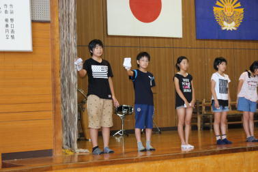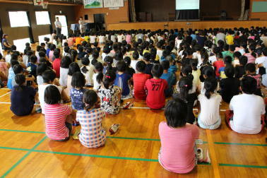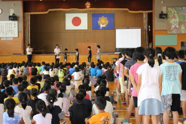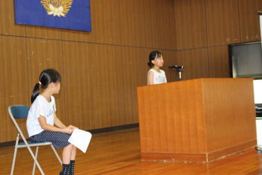 2年生の甲佐さん、4年生の田村さんが代表して1学期の反省を述べました。