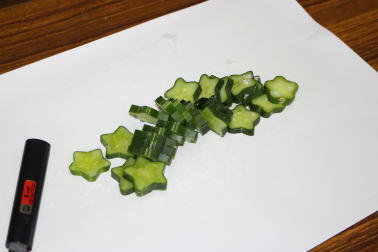 型枠から外したキュウリを切ってみると、見事な形が現れました。
