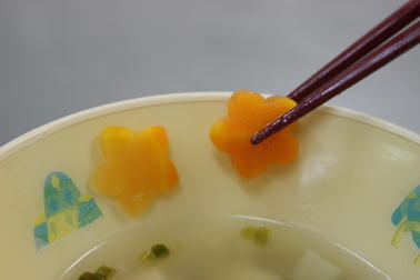 さて、昨日の給食(冬瓜スープ)にはハッピーニンジンが入っていました。
