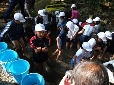 中学生のお兄さん、お姉さんの凛々しい姿を見て、子どもたちも驚いていました。