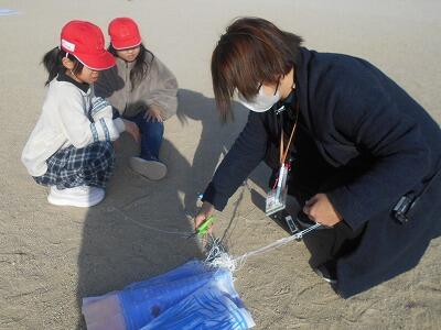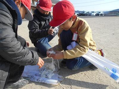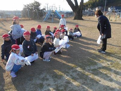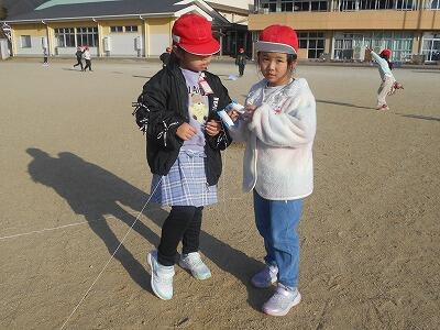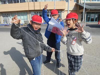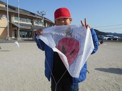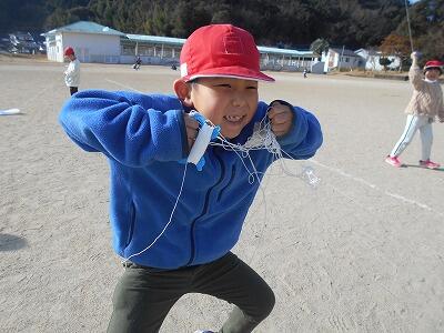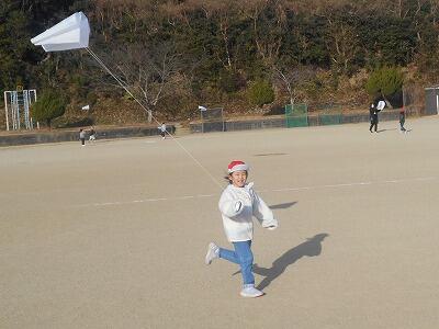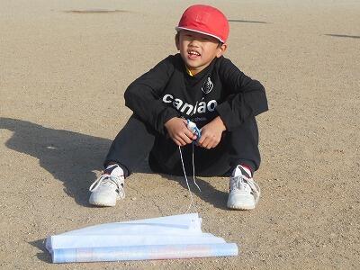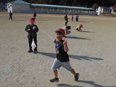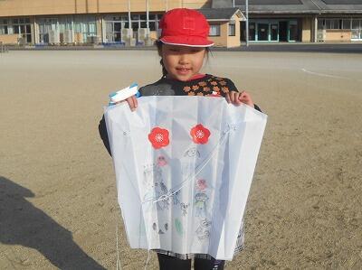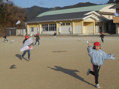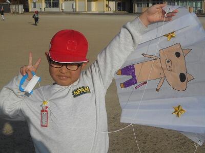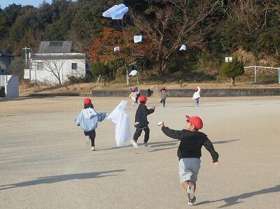 この後、無事、それぞれの凧を持って教室に戻りました。お家に持って帰ったら、広い場所でお家の人と一緒にあげるといいですね。寒い冬ですが「子どもは風の子」元気いっぱい屋外での遊びをこれからも楽しんでほしいです。