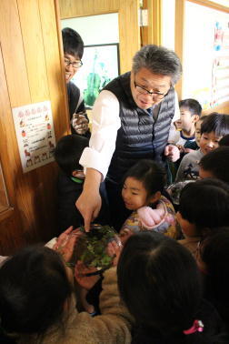 氷が張ったよ 投稿日時 : 2017/12/08 東海小学校 職員 昨日、1年生が校長室前に押しかけて行きました。何事だろうかとついて行きました。手には立派な氷がありました。野の草入りの透き通った氷でした。