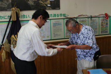 学校評議員会開催 投稿日時 : 2016/07/04 東海小学校 職員 7月4日(月)、新たな週が始まりました。さて、先週の土曜日は参観日と併行して学校評議員会を開催いたしました。都合のつかれた3名の皆様に委嘱状を手渡し、授業を参観して頂きました。多数の保護者の皆様にも囲まれ、子どもたちは張り切っておりました。那須演之様です。畑本益子様です。井本善也様です。