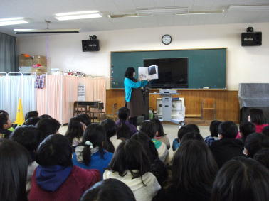 学校図書支援活動 投稿日時 : 2016/02/18 東海小学校 職員 2月18日(木)、今日は学校図書支援活動のある日でした。お二人の支援員の方が来校されました。多目的室にて、2校時に5年生、3校時に6年生が読み聞かせをしてもらいました。物音一つしない時もあり、くすくす笑う時もあり、なごやかな一時を過ごしました。