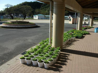 来春の用意は着々と 投稿日時 : 2015/11/24 学校管理者 3連休明けの11月24日(火)は、昨夜の雨も上がり、素晴らしい晴天でした。そんな中、黙々と学級園の植え付け準備をされている白石先生の姿がありました。1週間ほどすれば、1年生たちがはしゃぎながら花の苗を植え付けることでしょう。さらに、職員玄関前には、来春、学校を彩る花の苗たちがすくすくと育っております。