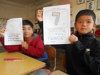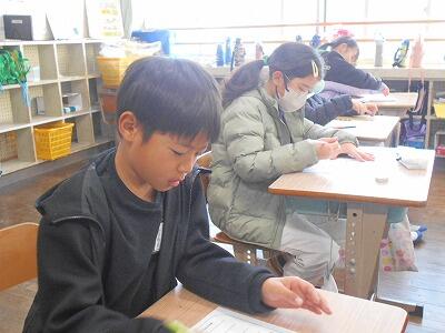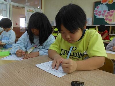 下学年のみんな、色鉛筆できれいに色を塗り、一生懸命に書いていました。もらった方はきっと嬉しいでしょうね。
