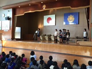 次に、図書委員会から、図書館利用のすすめとおすすめの本の紹介がありました。