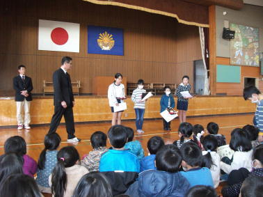 3月の全校集会 投稿日時 : 2016/03/02 東海小学校 職員 3月2日(水)、今朝の朝の活動は全校集会でした。まず、東日本大震災で被災した児童の作文を校長先生が紹介されました。そして、各種大会等で活躍した子どもたちの表彰がありました。数多くの子どもたちが賞状等を受け取り、みんなから盛んな拍手を浴びました。