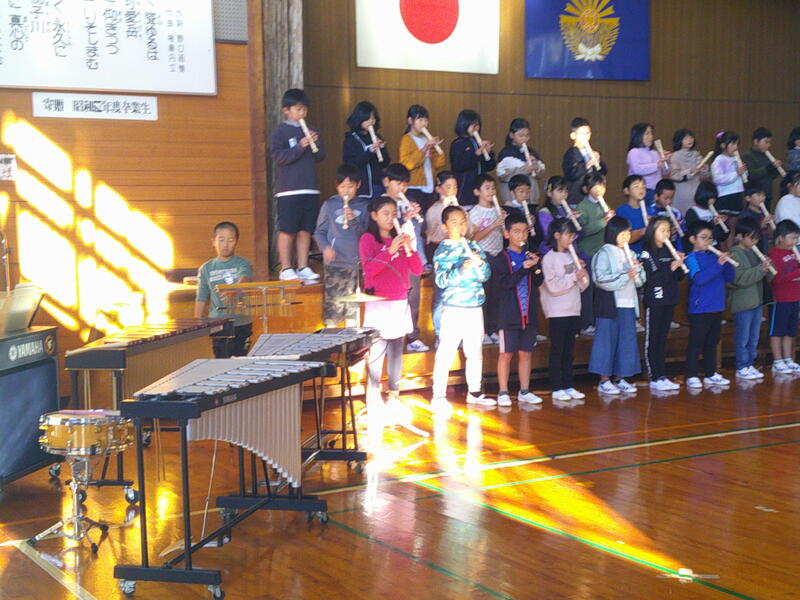 本日は、3年生と4年生の発表集会でした。3年生は、合唱とリコーダーの演奏。4年生は団七踊りの物語を表現した合唱や演奏を交えたオペレッタの発表でした。3年生のリコーダーの演奏は、とても4月から始めたとは思えない素晴らしい演奏でした。また、4年生の団七踊りは、ナレーションや演奏を加え、踊りと演奏、合唱との調和のとれた素晴らしいオペレッタでした。どちらの学年も、本日の発表集会に向け、全員で力を合わせて練習してきた成果が表れていたと思います。4年生は、17日(金)に開催される延岡市小中学校音楽祭で、今日の団七踊りを披露することになっています。がんばってほしいと思います。