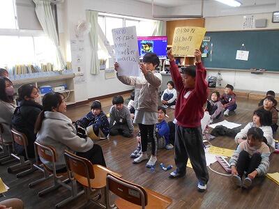 次は4年生で学んだことを発表しました。高学年に向けて学習がどんどん難しくなっていきますが、いつも意欲満々で取り組む4年生です。