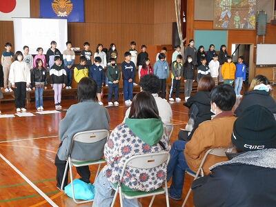 最後はお家の方へ、感謝の気持ちを込めて合唱のプレゼント。背面に映し出される小さい頃の写真がなんともかわいいです。家族へのメッセージも添えてありました。