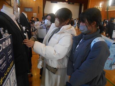体育館内には制服も展示されていました。値段を見て、「自分の頃、こんなに高かったかな?」と思いました。時代の差を感じます…