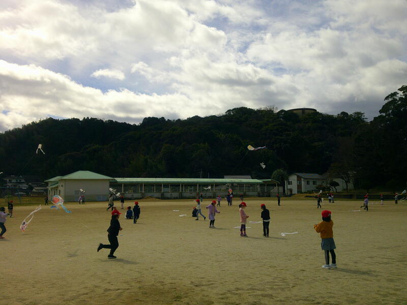 1年生が、生活科の「たこであそぼう」の授業で、凧揚げを楽しみました。今日は天気も良く、授業の時には、子ども達が作った凧には丁度良い風が吹いていました。グランドを元気よく駆け回りながら凧揚げを楽しむ姿、上手に風に乗り上がった凧に喜ぶ姿、短い時間ではありましたが、それぞれ楽しむ姿が見られました。昔のように凧揚げをする機会が少なくなっている子ども達にとって、貴重な時間となったと思います。