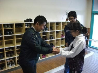 昨日に続き、今日は、小中合同の挨拶運動の様子を紹介します。
