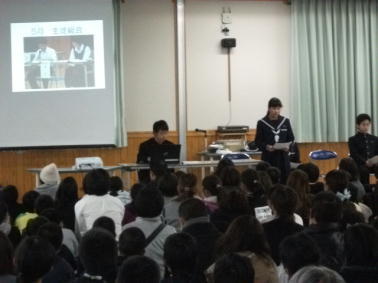 校長先生の話や生徒会の皆さんの話などを真剣に聞きました。