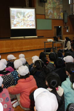 給食クイズや紙芝居、感謝状贈呈などを行いました。