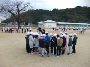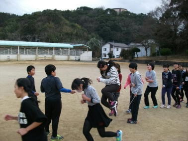 昨日の朝の活動の時間に、全校で長縄の練習を行いました。