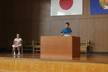 石田君と深田さんが代表で作文を発表しました。