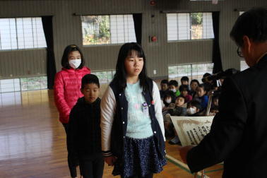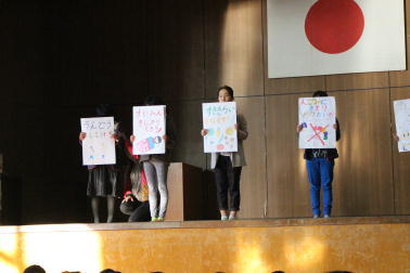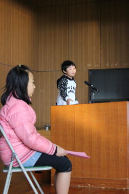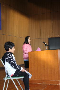 湯浅さんと川島さんが児童代表作文を発表しました。