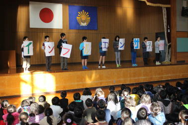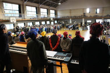 大掃除の後、全員が体育館に集まりました。