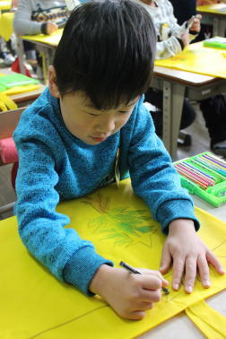 【作品バックに絵を描いている子ども】