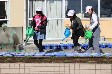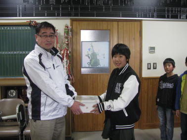 昨日、元気のよい声が児童玄関から響いてきました。