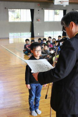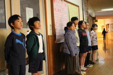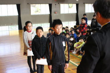 3年生の代表が朝のあいさつをしていました。