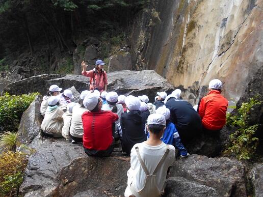 初日はあいにくの雨となり、行縢山登山は断念し、滝トレッキングを行いました。