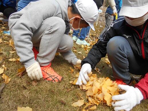 奉仕作業もしました。きれいな銀杏の葉っぱを集める作業はとても楽しくできました。
