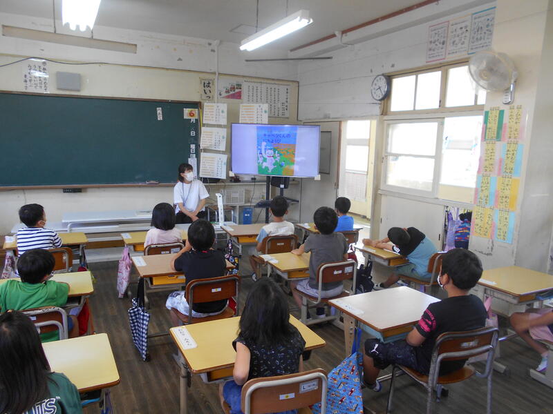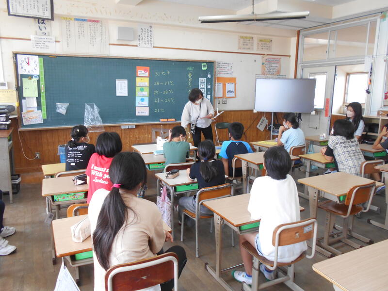 5年生では、総合的な学習の時間に延岡の民話について調べています。14日(火)に「延岡の語り部・萌ぎの会」の会員の方にお越しいただき、「1.メキシコ女王の伝説、2.太郎兵衛狐と源吉さん、3.琴引きの松、4.琴塚、5.愛宕山と日向御前」といった演目で、出前語りをしていただきました。今回の話しをもとに学習を深め、今後の活動に生かしていく予定となっています。萌ぎの会の皆様ありがとうございました。
