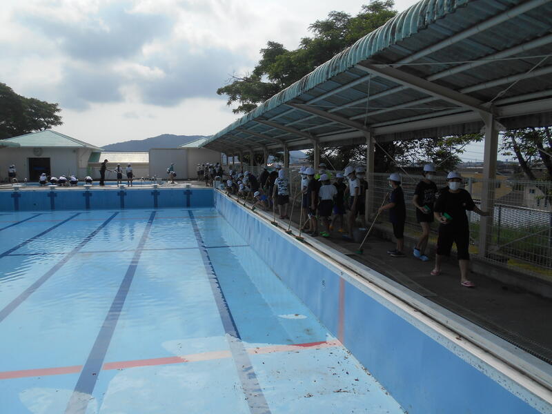本日、5年生が1校時から2校時、6年生が3校時から4校時にかけて、プール清掃を行いました。事前に職員で清掃していましたが、今日の清掃のおかげで、さらにプールがきれいになりました。水泳は6月27日(月)から始まる予定となっています。水泳指導に関する詳細につきましては、後日連絡いたします。