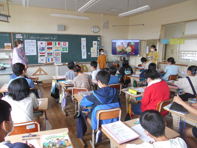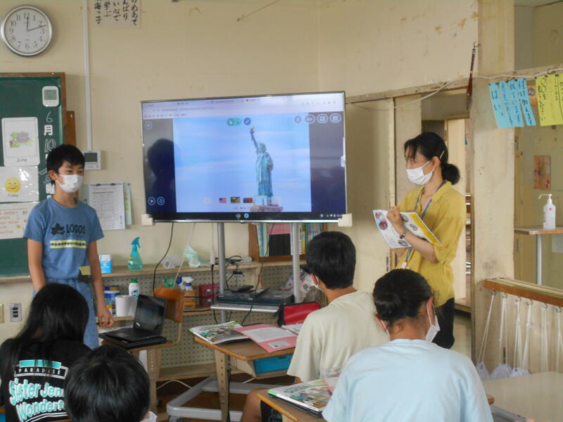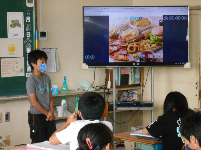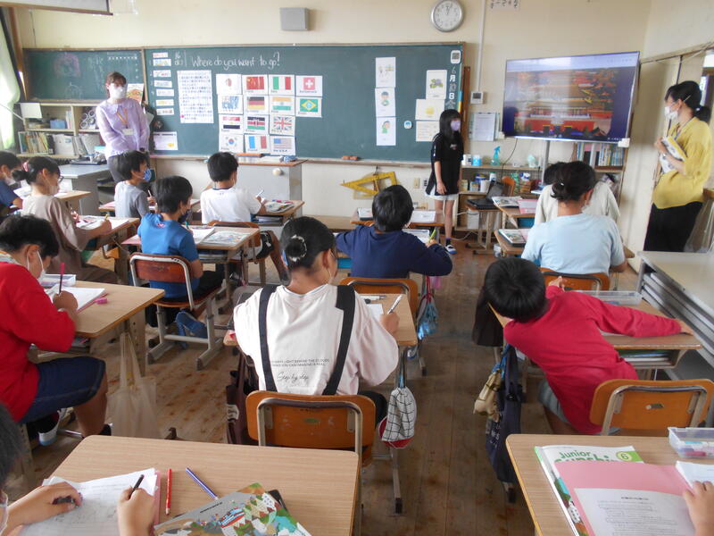本日は、外国語指導助手のアナ・メイソン先生に訪問していただき、外国語の授業を行いました。6年生の授業では、英語で自分の行きたい国の紹介をし、みんなの紹介を聞いた後、行きたい国を学級で選ぶ授業を行っていました。子ども達は意欲的に授業にとり組んでいました。