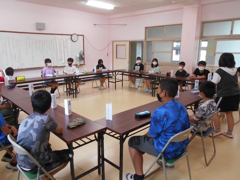 6校時に代表委員会が行われ、「学校生活の安全を守るためには、どうしたらよいか。」を議題に話し合いが進められていました。各委員会の代表者が、学校生活をよりよくするためにどのような活動をすべきなのか、積極的に意見を述べていました。また、同時に各委員会活動も行われ、体育委員会はグランドの除草作業に取り組み、保健委員会は熱中症予防に伴うマスク着用について話し合っていました。今日の代表委員会の話合いを今後の学校生活に生かすとともに、各委員会の活動をとおし、自分たちの手でよりよい学校を築き上げていってほしいと思います。