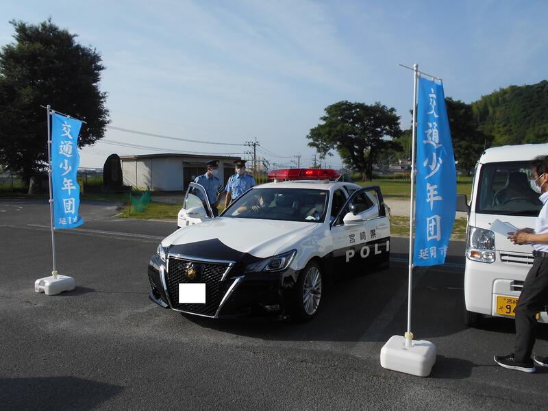 延岡市「めひかり交通安全」対策本部では、「飲酒運転根絶強化月間」の期間中、各種啓発活動を実施しておられ、その一環として延岡市交通少年団校内早朝広報活動にも取り組んでおられます。本日は、交通少年団の岩﨑幸歩さん(6年)が、本校で延岡警察署のパトカーからマイクを使用し、交差点での歩行等交通ルールを守ることを呼びかけるなど、交通安全の広報活動に取り組みました。夏休みを前に、再度、交通安全指導も実施してまいりたいと思います。