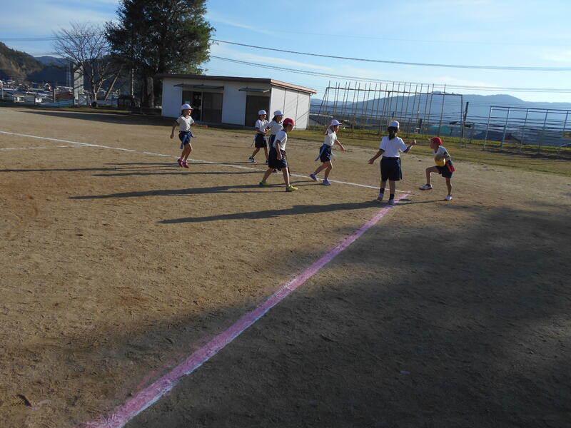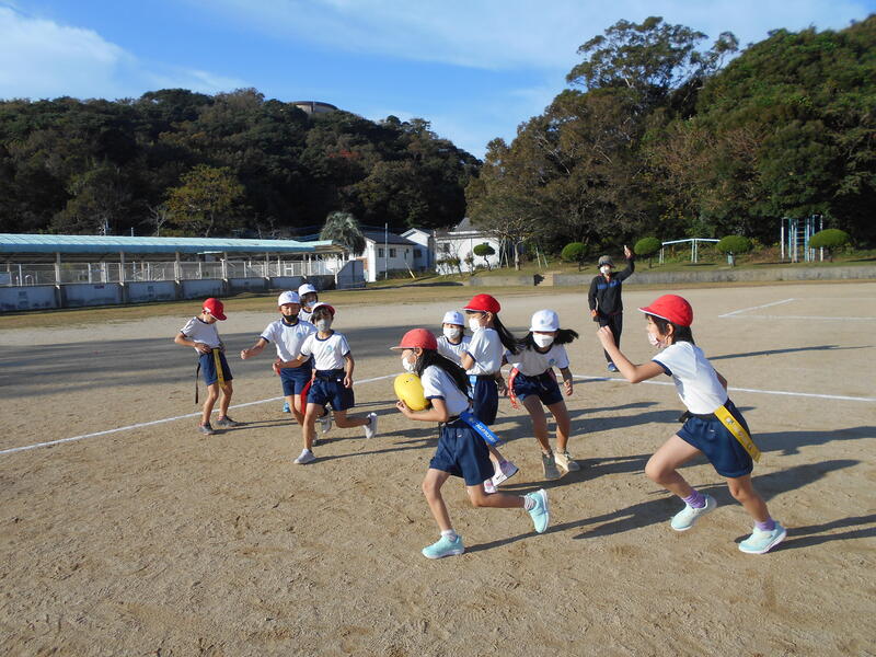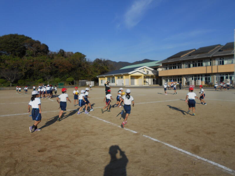 昨日は読書月間についてお知らせしましたが、11月21日(月)から12月23日(金)まで、持久走月間にも取り組みます。本日は1年生が、3分間の持久走にチャレンジしていました。(3・4年生は4分間、5・6年生は5分間)事前に各自各自目標を立て、期間中、目標を目指し持久走に取り組むことになっています。また、本日は、3年生の体育の授業では、「タグラグビー」に取り組んでいました。体育の授業もがんばり、元気な体と豊かな心を育んでいってほしいと思います。
