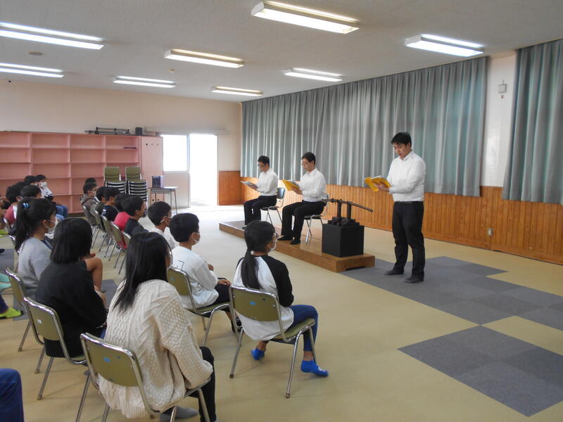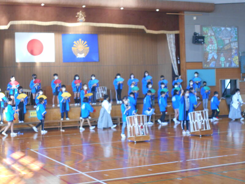 本日は、1校時に全校集会を行いました。今回の集会は、3年生と4年生の発表、宮崎県読書感想文コンクールやスポーツテストの体力賞等の表彰でした。3年生の発表は、日頃授業で学んでいることの発表やリコーダーでの演奏、4年生は運動会でも披露した「団七踊り」に、団七の物語を表現した合唱や演奏もまじえたオペレッタでの発表でした。素晴らしい発表をした3年生と4年生、表彰された児童の皆さん、よくがんばりました。4年生は、今日発表した内容を、18日(金)に実施される、延岡市小中学校音楽祭で披露する予定です。