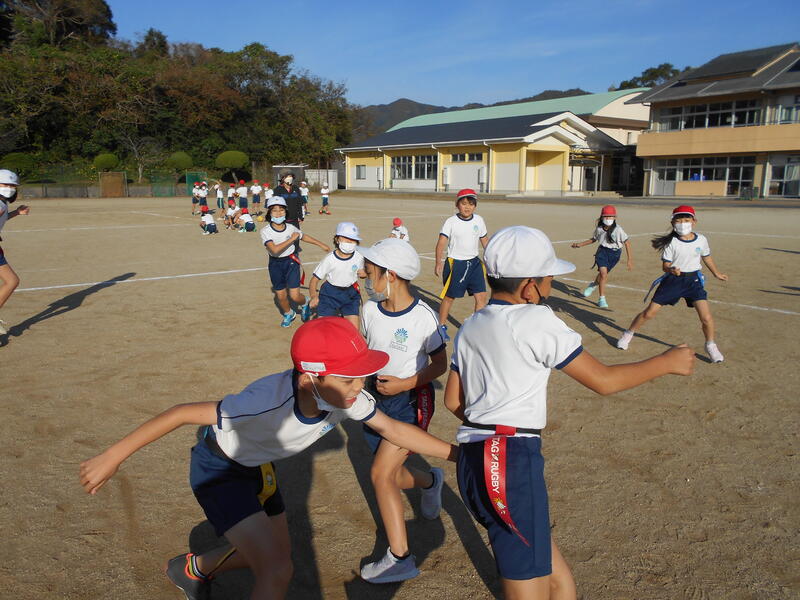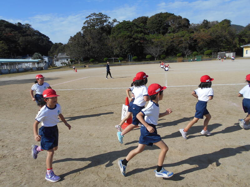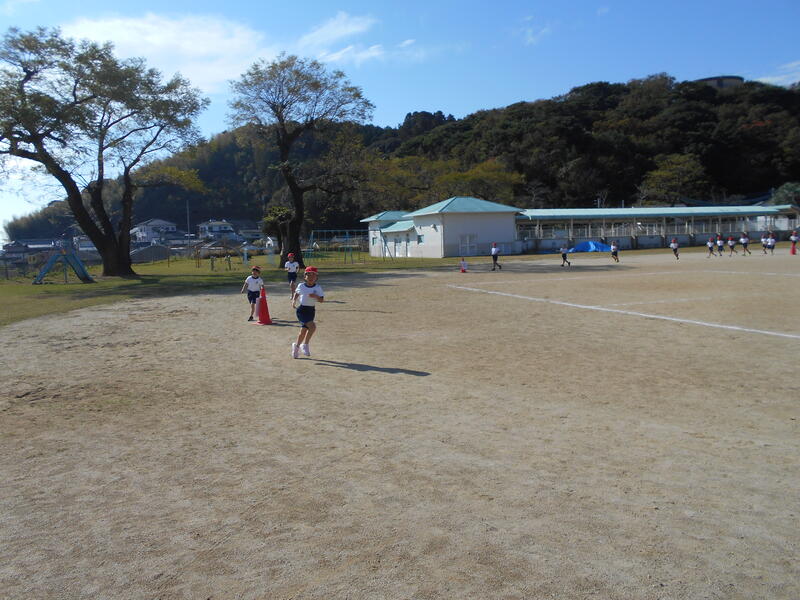 昨日は読書月間についてお知らせしましたが、11月21日(月)から12月23日(金)まで、持久走月間にも取り組みます。本日は1年生が、3分間の持久走にチャレンジしていました。(3・4年生は4分間、5・6年生は5分間)事前に各自各自目標を立て、期間中、目標を目指し持久走に取り組むことになっています。また、本日は、3年生の体育の授業では、「タグラグビー」に取り組んでいました。体育の授業もがんばり、元気な体と豊かな心を育んでいってほしいと思います。