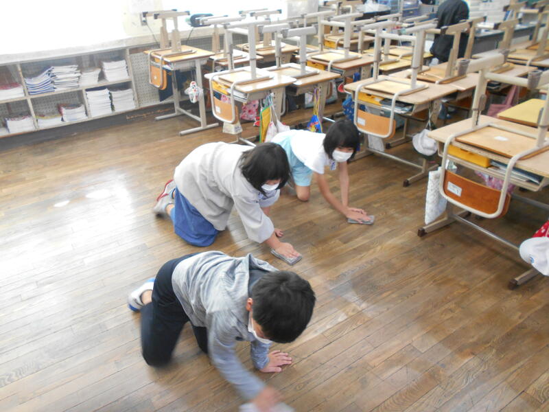 今週から、無言清掃強化週間に取り組んでいます。現在、5年生・6年生をリーダーに、縦割り清掃に取り組んでいますが、リーダーを中心に日々無言清掃に取り組んでいます。強化週間の期間は先生方が各清掃場所を点検し、無言清掃ができている場所については、シールを貼っていくことになっています。清掃をつうじ、「ともにがんばり うつくしい心」を育んでほしいいと思います。