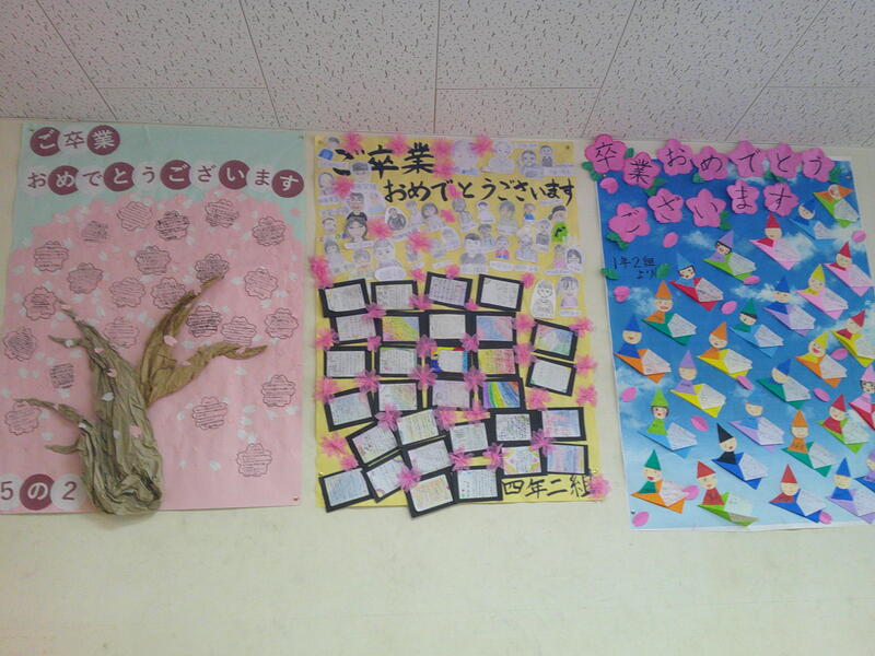 6年生の教室の壁には、各学級で作成した感謝の言葉が壁いっぱい掲示されています。どれも心のこもったものばかりです。今日は卒業式の予行練習も行いましたが、下級生の感謝の気持ちが6年生にも伝わり、素晴らしい卒業式になるのではないかと思います。