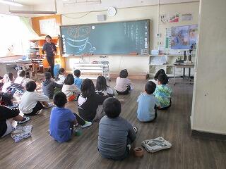 この日は、港小学校との交流が行われました。港小学校から12名の児童が来て、それぞれの学年に分かれて、交流をしました。時間割ごとに、港小と本校の先生方が、道徳、学級活動、外国語、体育など、一緒に授業を行い、交流しました。毎年1回行われているため、1年生以外は昨年度も一緒に活動しており、すぐに打ち解けて授業を受けていました。2~4時間目の短い時間での交流でしたが、子どもたちは楽しい時間を過ごしたようです。