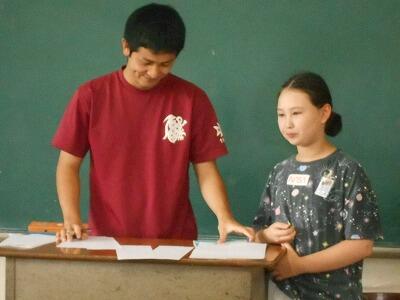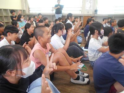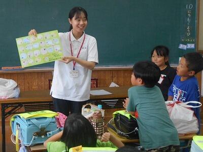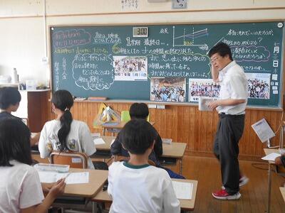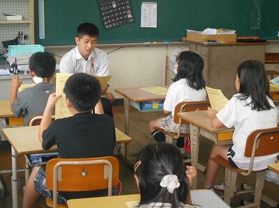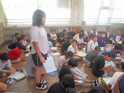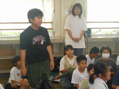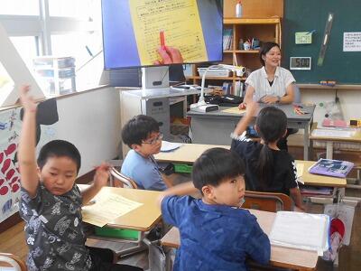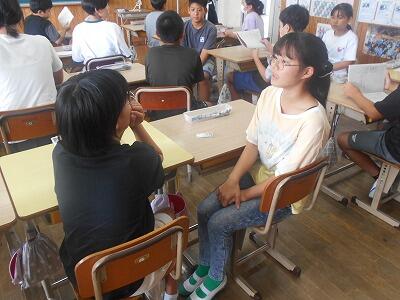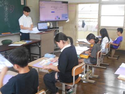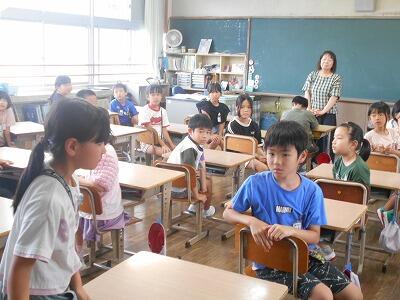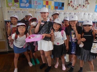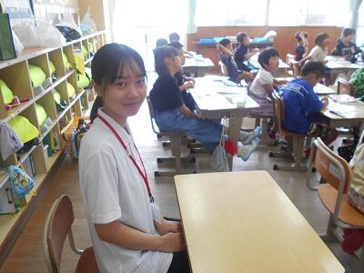 6月11日より1ヶ月間、3年2組のみんなと一緒に勉強したり、遊んだりと元気いっぱい過ごしました。1ヶ月はあっという間に過ぎたそうです。最後の昼休みは外が雨だったこともあり、教室で「いつ・どこで・だれが・何をしたゲーム」をして学級のみんなで楽しく過ごしました。