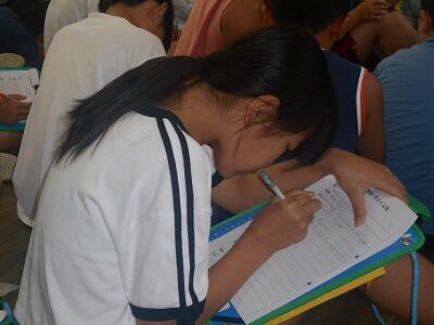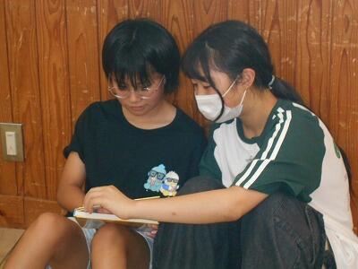 収録は一人ずつ行われ、みんな自分の夢について話します。教室を覗くと自分の番に備えてノートに書いた文章を何回も読み直したり、友達に聞いてもらったりして練習していました。おっ! 余裕のお友達もいますね。