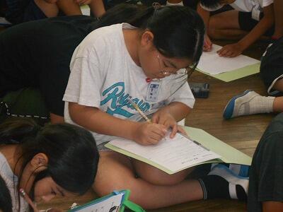 7月14日(月) 「いよいよ団七踊りの練習が始まります。皆さん、全力で学びにいって下さい。」担任の先生の言葉で一段と気合いの入った4年生の団七踊りの練習がいよいよスタートしました。