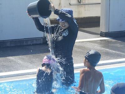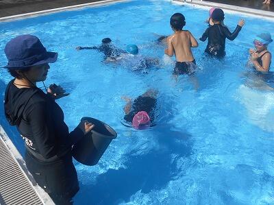 最後のお楽しみタイム。プールでの約束を守って安全に水遊びをします。
